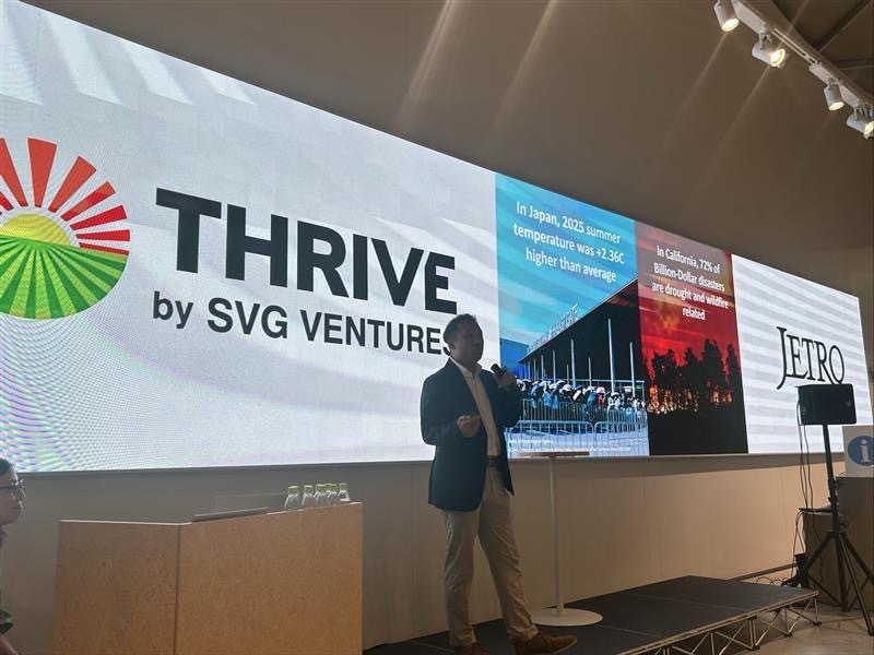 その後、JETRO主催の日米スタートアップ企業が集まるイベントにも参加しました。万博会場で開かれていた「グローバル・スタートアップ・EXPO2025」の関連イベントで、日米のアグリテック事業に関心のある、投資家や企業、起業家向けに、自社の事業内容をプレゼンする場です=下写真。
