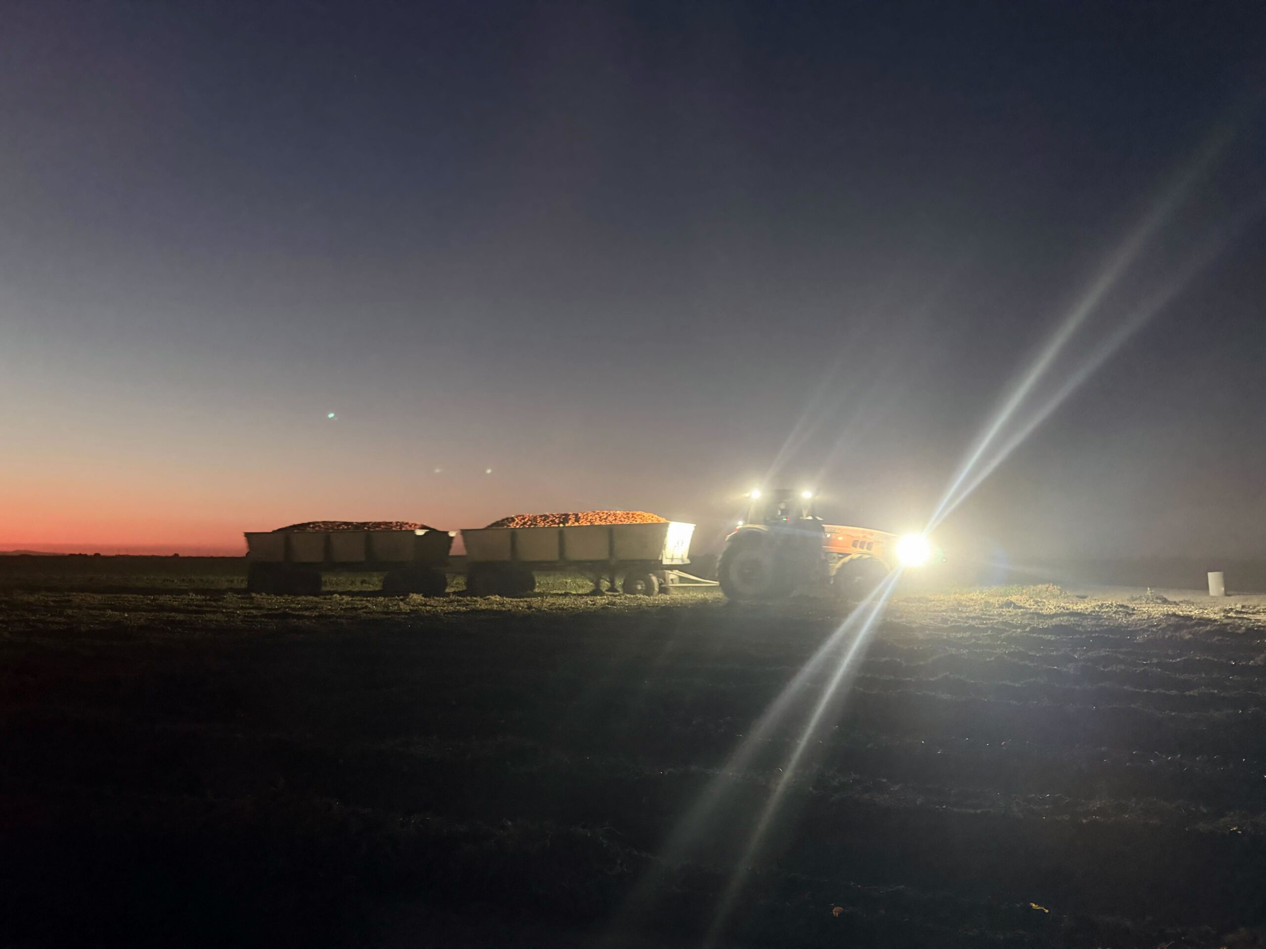この収穫作業を2交代制で早朝から深夜まで続け、私が滞在した4日間で、圃場全体の3分の2まで収穫が終わりました。どれだけ広大な圃場なのかを実感しました。
