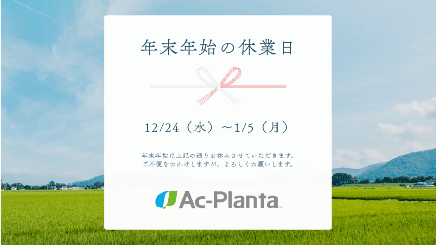 アクプランタは年末年始、下記の期間休業とさせていただきます。