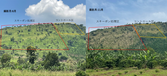 このことから、スキーポン処理をすることで、膨大な時間と費用、労力が費やされる森林回復の事業においても、通常よりかなり速く木の苗が成長することが分かります。